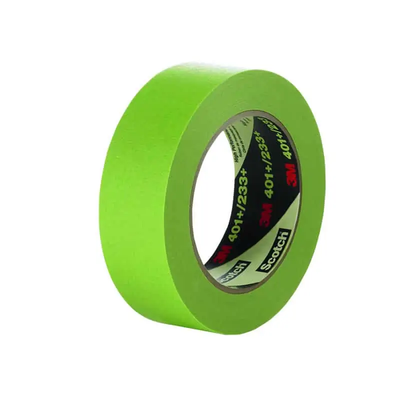 The 3M™ High Performance Green Masking Tape 401+ was designed to deliver super-sharp paint lines where surface temperatures can reach up to 250 degrees F/ 121 degrees C. This green crepe paper tape is ideal for critical paint masking applications in automotive, specialty vehicle, and industrial markets, where strong holding and high temp performance is required.